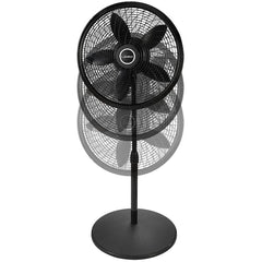 The Lasko Cyclone Large Room Pedestal Fan offers powerful and stylish cooling with its sleek black finish and multiple options for use. The height-adjustable fan gives you the control to direct air circulation and flow to optimize your comfort, adjusting to meet your needs with effortless operation. The optional oscillation and tilt-back fan head allow you to easily make adjustments to customize your comfort level. This stand fan has an 18-inch blade, and is designed to provide maximum airflow for even the largest home spaces with its swirling cyclone grill and 3 quiet and energy-efficient speeds.